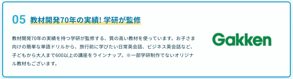 クラウティでは、教育大手の「学研」が監修した教材を使用しており、英語初心者の子どもでも安心して学べる品質が確保されています。
