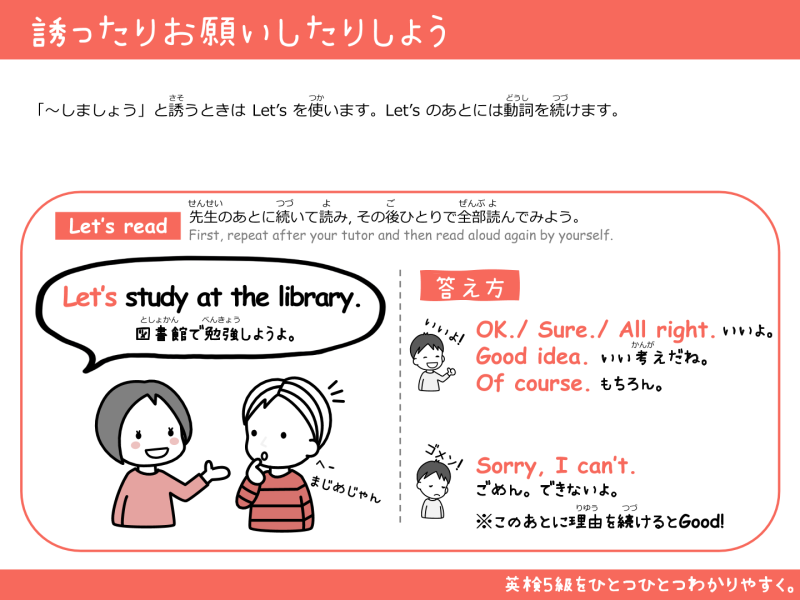 学研のベストセラー本「英検をひとつひとつ分かりやすく」を使ってレッスンが受講できます。対応級は5級~3級のレベルで、イラスト付き、日本語付きのわかりやすいテキストで意味を理解が可能。
