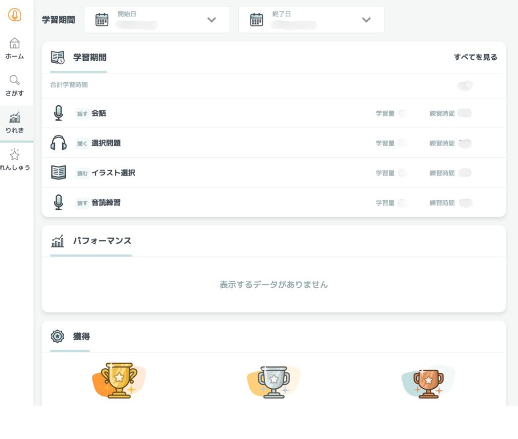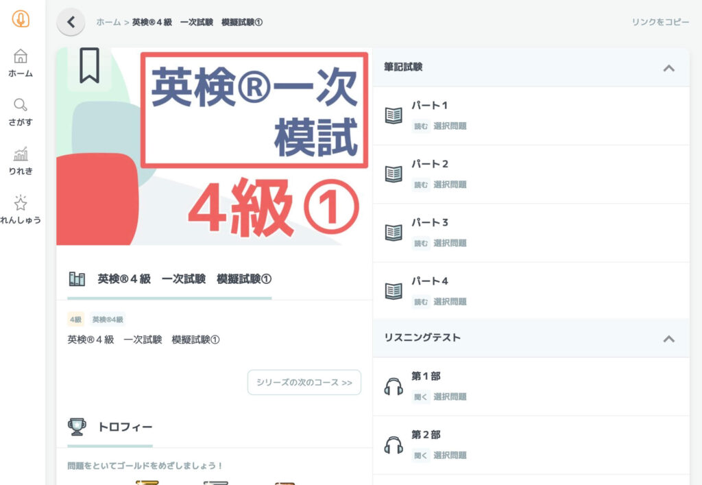 ゲームのように獲得したトロフィーも見れるので、学習のモチベーションもアップします。1日10分の積み上げでも、週末に振り返ると成長が実感できます。見える化は、習慣化の強力な後押しです。