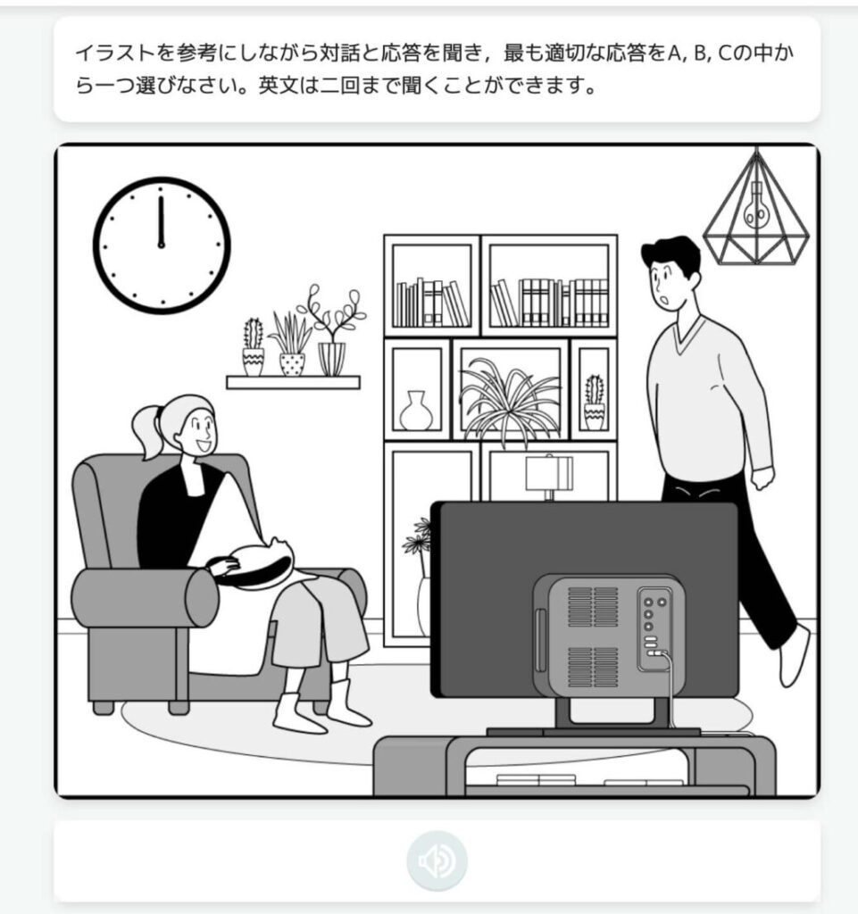 娘はリスニングのパート1の練習問題に取り組みました。パートごとに選んで練習できるので「今日はリスニング」「明日はリーディング」と選んだり、苦手なところを集中して対策できたりします。短時間で区切れるので、夕食前やお風呂の前などすき間時間にサッと行えるのも助かります。