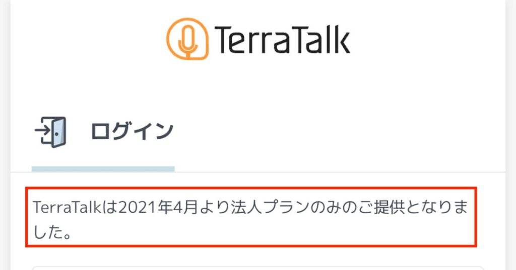 過去にはTerratalk単品で月額1,980円で利用できたようなのですが、2021年以降は法人プランのみとなったため、個人がTerraTalkのみと契約することができなくなりました。
