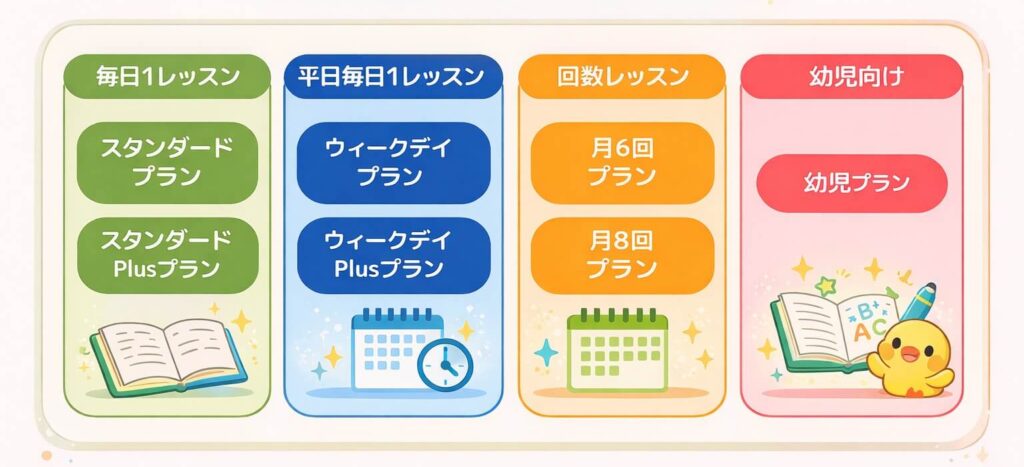実は、kimini英会話は学研カリキュラムをベースに、受講ペース別で料金が整理されているので、意外とシンプルに選べます。