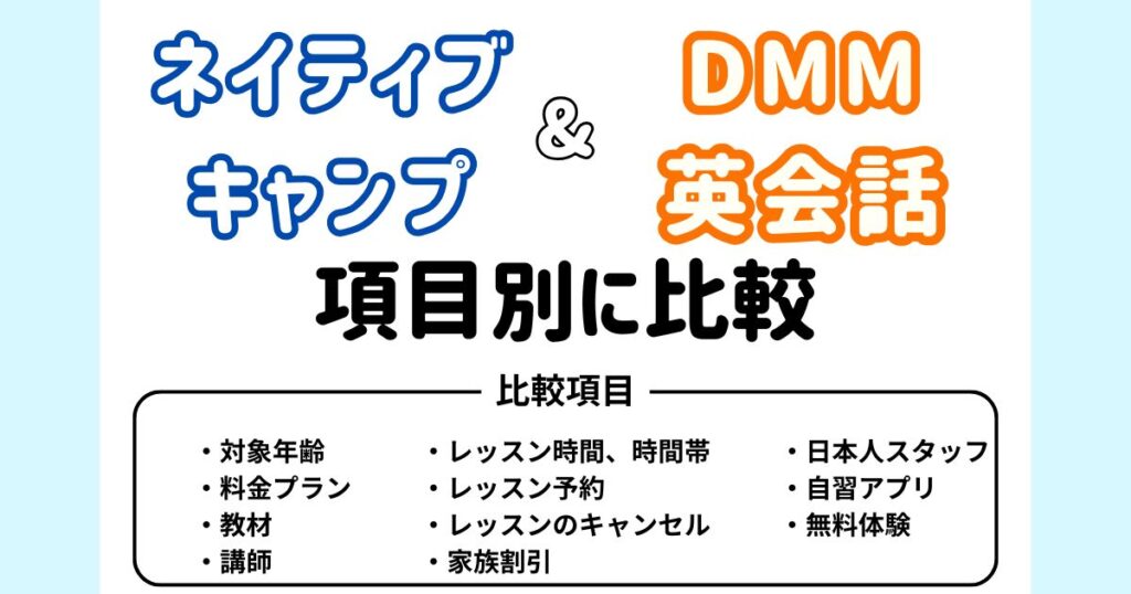 以下の11項目でネイティブキャンプDMM英会話を比較していきます。