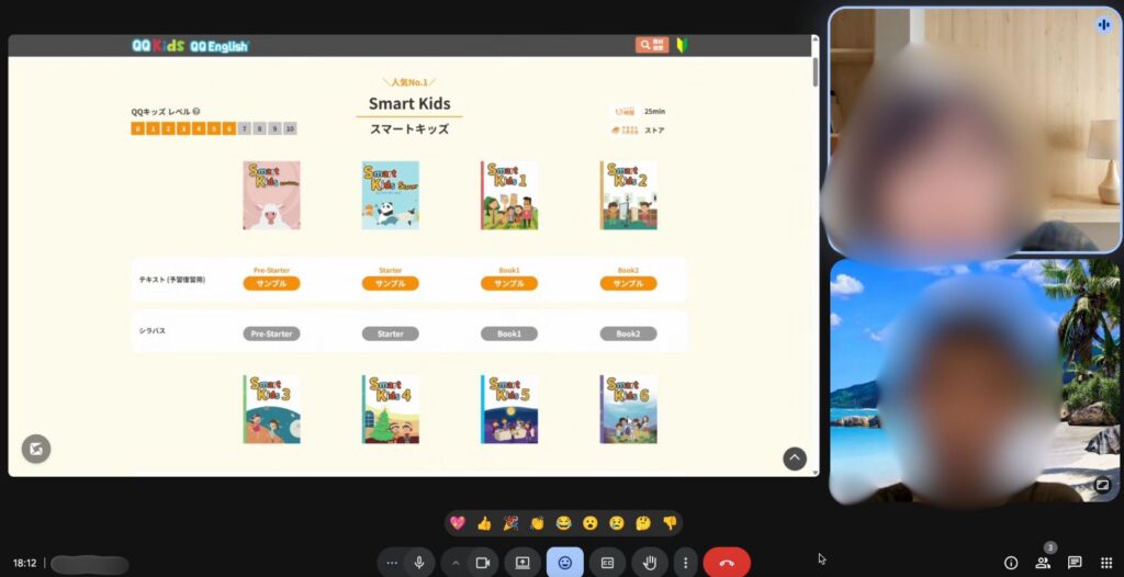 キャンパストップではオンライン英会話QQキッズの教材を使用。人気ナンバー1のSmart Kidsシリーズなどをメインカリキュラムとし学習を進めます。