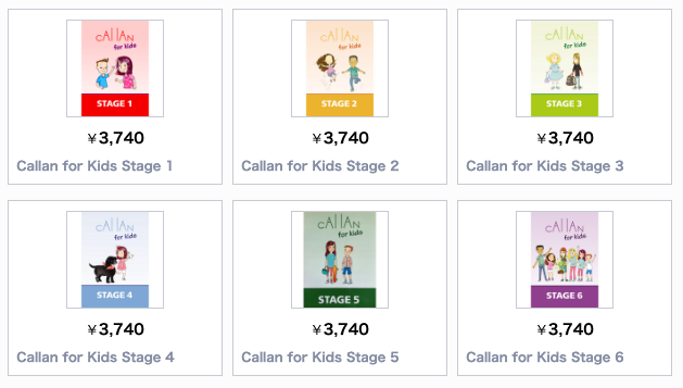 唯一の購入必須は「Callan for Kids(カラン for キッズ)」で、専用テキストの購入(1ステージ3,740円)が必須です。