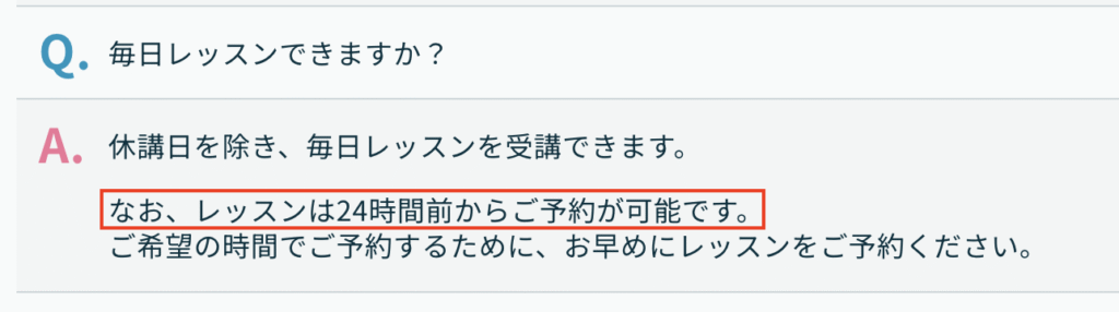 当日の予約については、講師の数が多くなる昼から夜(11時〜22時)にかけてのレッスンであれば比較的取りやすいのが特徴です。